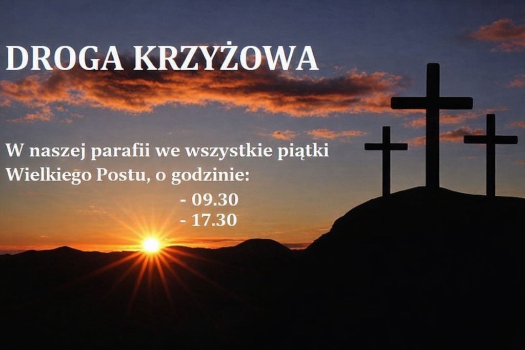 2. W każdy piątek w Wlk. Poście dwie Msze Św.: o 9:00 i 18:00. Droga Krzyżowa o 9:30 i 17:30. Taca z piątków Wielkiego Postu będzie ofiarą jako jałmużna wielkopostna.